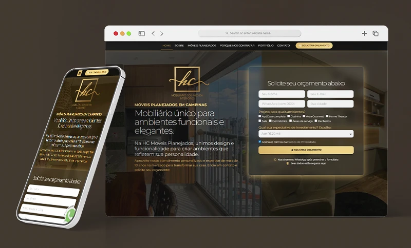 Para fortalecer a presença digital do HC Móveis Panejados e gerar novas oportunidades de negócio, realizamos um trabalho completo de marketing digital, que incluiu: